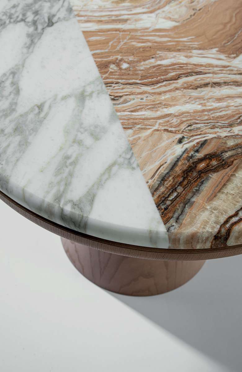 Цветовой диалог различных видов мраморной отделки — отличительная черта коллекции Adami, серии небольших столиков разных размеров, которые привлекают внимание своей простотой и изысканностью. Столики Adami отличаются моноблочной структурой и изысканными сочетаниями мраморных столешниц, создавая элегантный двухцветный образ. Основание из массива дерева с его мужественными пропорциями уравновешивает и смягчает визуальный эффект столешницы. В результате получается гламурный и современный предмет мебели, который легко и элегантно впишется в любой интерьер.