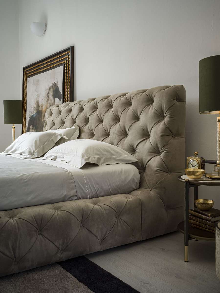Кровать Caracciolo  – шедевр самого изысканного и завораживающего ручного мастерства в мире мебели. С оттенком старины, но при этом более современная, чем когда-либо. Современные квадратные и линейные формы придают кровати благородный вид и строгие пропорции, смягченные волнообразным эффектом капитоне. Кровать Caracciolo, доступная в кожаной или тканевой обивке, станет настоящим королевой спальни.