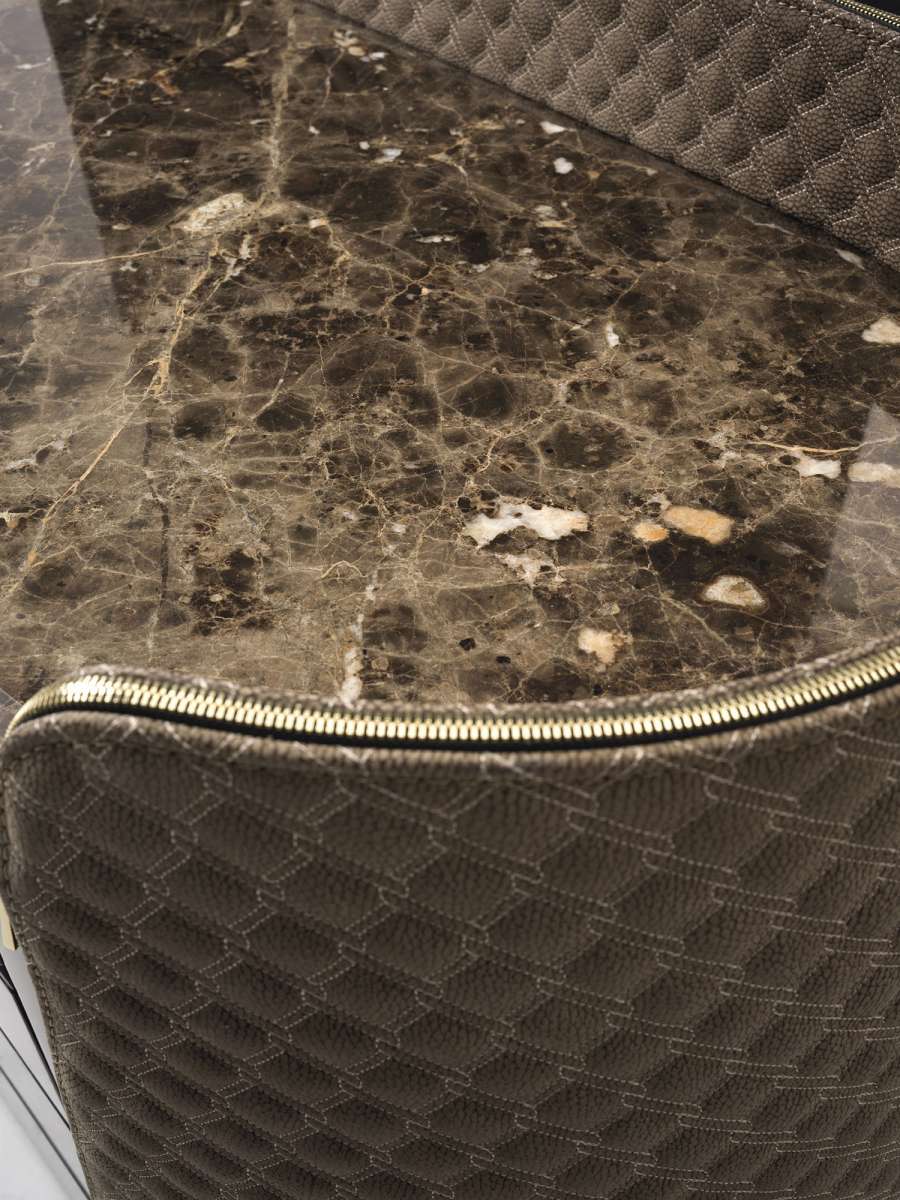 Contarini — роскошный и в то же время универсальный предмет мебели. Внешняя структура доступна в двух вариантах: Contarini может быть украшена изящной стёжкой или, по выбору, изящной тиснёной вышивкой. Сочетание внешней металлической опорной конструкции и мраморной столешницы делает этот сервант, доступный в одном размере, узнаваемым предметом мебели с точки зрения дизайна и богатства деталей. Стёганое полотно украшено золотистой хромированной молнией, а деревянные фасады ящиков дополняют этот шедевр мастерства и роскоши. Contarini доступен в двух версиях - комод и сервант.