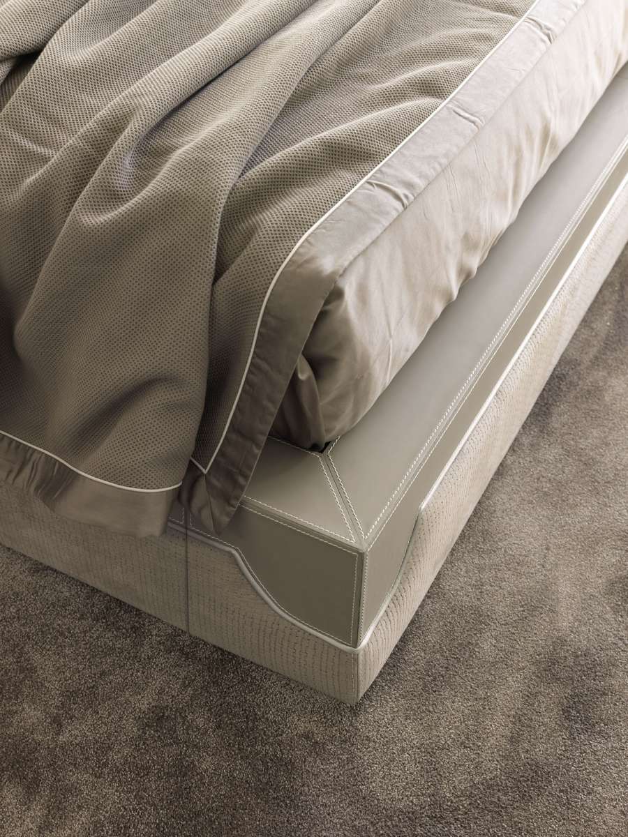 Кровать Corio — непревзойденный герой спальной зоны. Изголовье, напоминающее ширму, является центральным элементом изделия и всего окружающего его пространства. Изголовье отделано вставками из кожи Cuoio, подчеркивающими его ширину, а панели могут быть обтянуты тканью или кожей. Каркас кровати, с его квадратными и строгими линиями, также отделан кожей для создания гармоничного визуального эффекта.