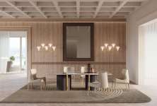 Стол Corsini сочетает в себе геометрическую простоту форм столешницы и изысканные детали основания, создавая гармоничный и роскошный предмет. Основание стола, обитое стеганой кожей, дополнено пластиной и металлическими вставками. Мраморная столешница доступна в двух вариантах: толстом и тонком, что позволяет создать визуально лёгкую или более выразительную и выразительную столешницу. Сочетание различных отделок и материалов создаёт роскошный результат без излишеств.