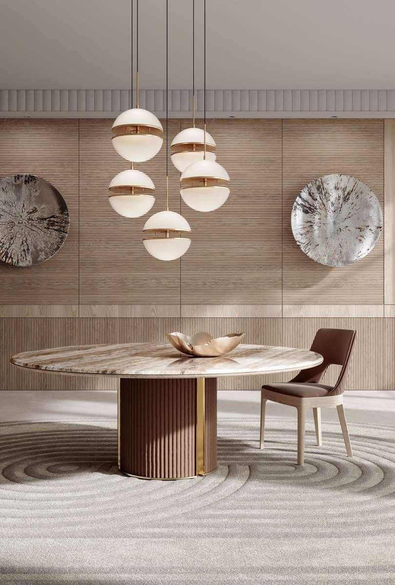 Стол Corsini в версии THICK оснащён дополнительным мраморным кольцом, которое подчеркивает мраморную столешницу.