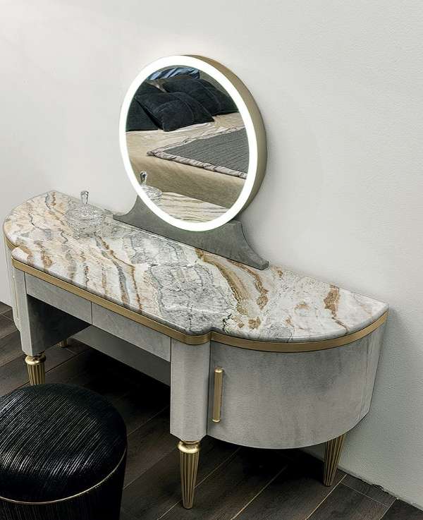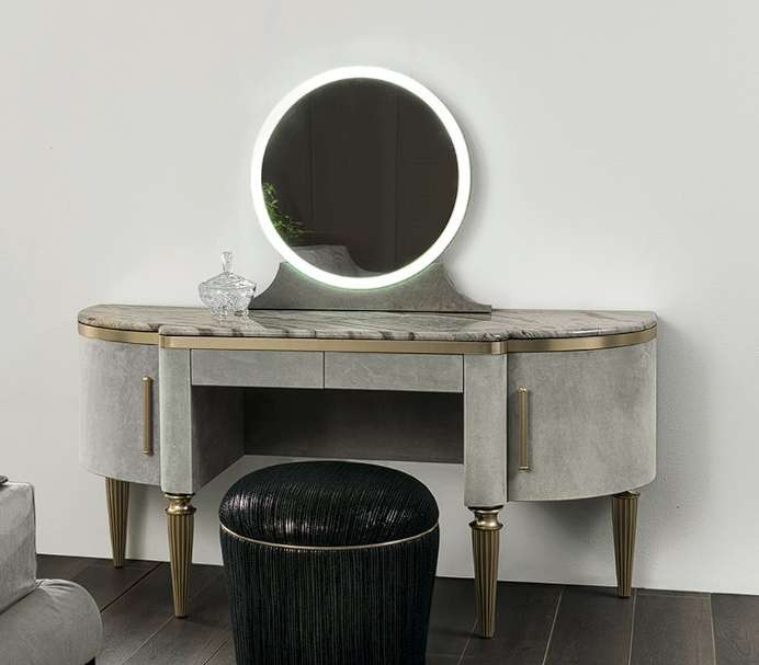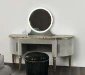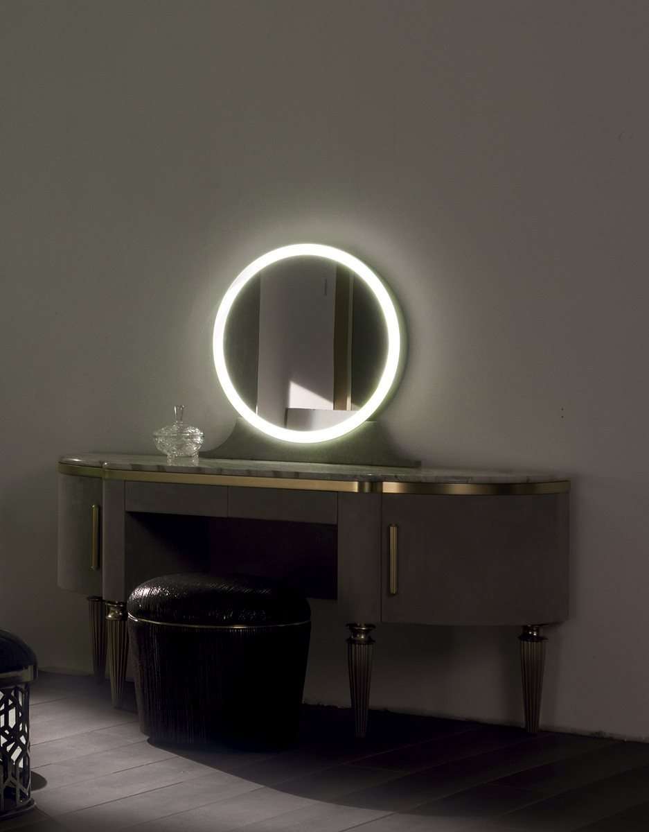 Туалетный столик Dame с дверцами и ящичками представляет собой полезный и практичный атрибут для макияжа в спальне. Изделие, отличающееся мягкими линиями и неоклассическим стилем, оборудовано круглым зеркалом со светодиодной системой освещения.