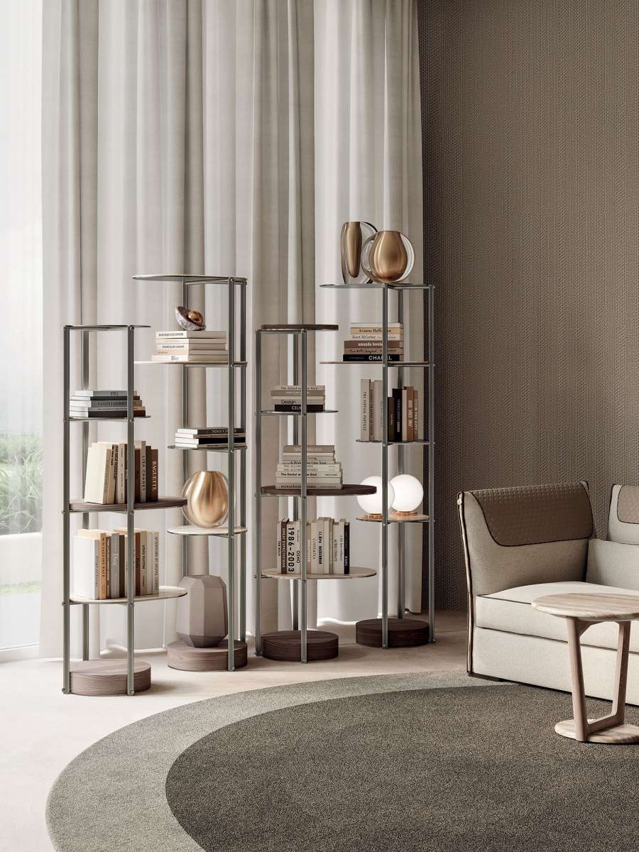 Doge — это отдельностоящий книжный шкаф со сложной микроархитектурой: система отдельных книжных полок с вертикальной компоновкой, предназначенная для индивидуального использования или для использования в ансамбле, что позволяет использовать два, три или более книжных шкафов одновременно. Свобода меблировки Doge расширяется благодаря выбору различных отделок и материалов, что позволяет полностью персонализировать книжный шкаф, создавая элегантную игру цветов и фактур.