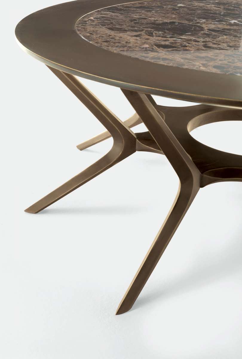 Столик Ducci отличается каркасом из массива дерева, покрытого патинированным бронзовым лаком. Формованные ножки расположены в форме звезды, создавая уникальный и неожиданный эффект. Столешница выполнена из массива дерева, на котором лежит столешница из мрамора или керамогранита. Ducci — это небольшой столик с шарнирным механизмом, который элегантно украсит любую комнату.
