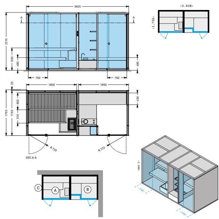 Effegibi BodyLove SH...Effegibi BodyLove SH Front Сауна&Хаммам 393x176x220см, угловая DX, цвет: термообработанная древесина/гладкое стекло