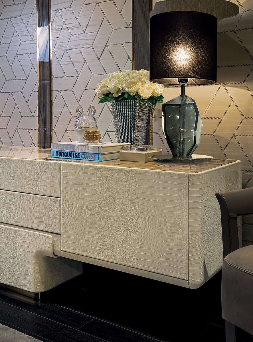 EVELYN 180x53xH70 см LONGHI Комод (кожа с металлической окантовкой, столешница из мрамора Juliet, Patagonia)