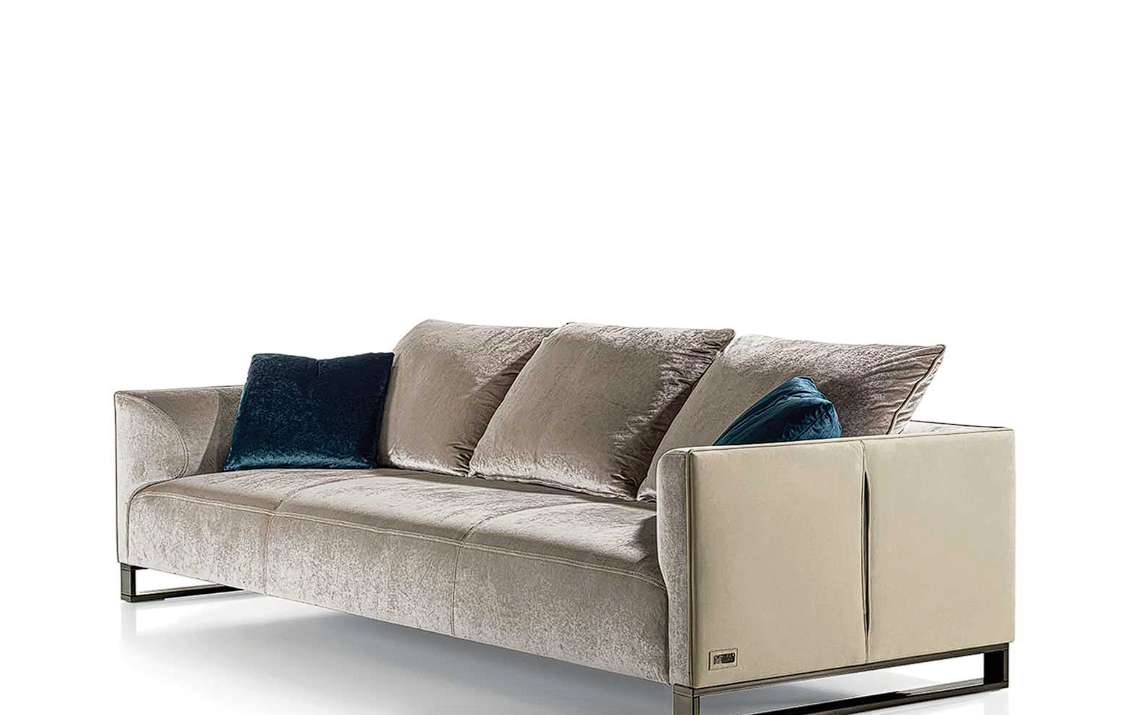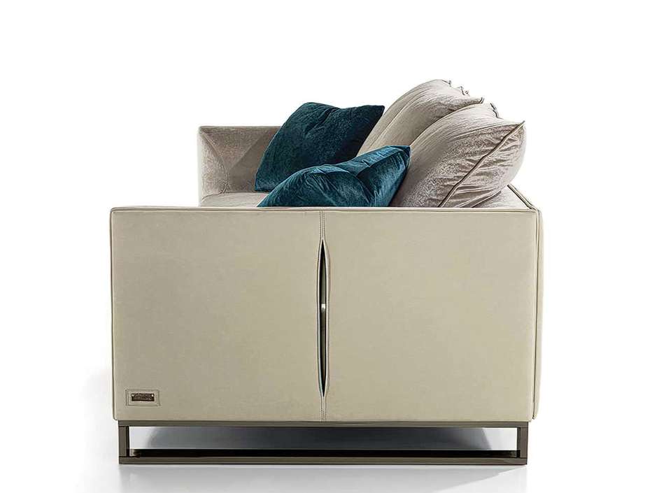 Эксклюзивный диван, изысканный и узнаваемый благодаря своему качеству, современного дизайна с чистыми минималистичными линиями: отличительной чертой этого проекта является вертикальный разрез с металлической вставкой в пространственном стиле XX века.