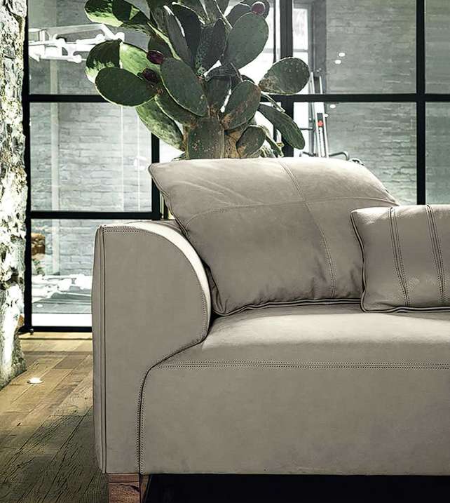 Эксклюзивный диван, изысканный и узнаваемый благодаря своему качеству, современного дизайна с чистыми минималистичными линиями: отличительной чертой этого проекта является вертикальный разрез с металлической вставкой в пространственном стиле XX века.