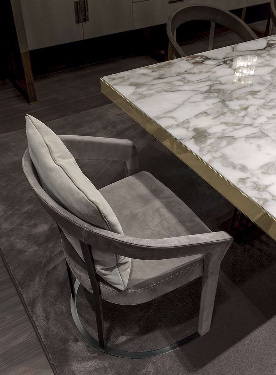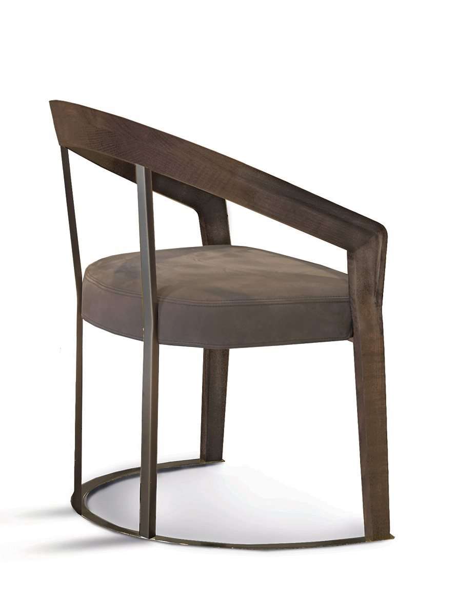 Стул и кресло с каркасом из массива ясеня и мягким сиденьем отличаются мягкими и элегантными линиями и напоминают стиль 40-х годов. В древесине подлокотников, подвергнутой профилированию, пантографированию и гибке, заметна реинтерпретация в современном ключе форм прошлого, получивших актуальность. Опоры спинки и основание выполнены из металла. Стул может дополняться удобной подушкой для спины.