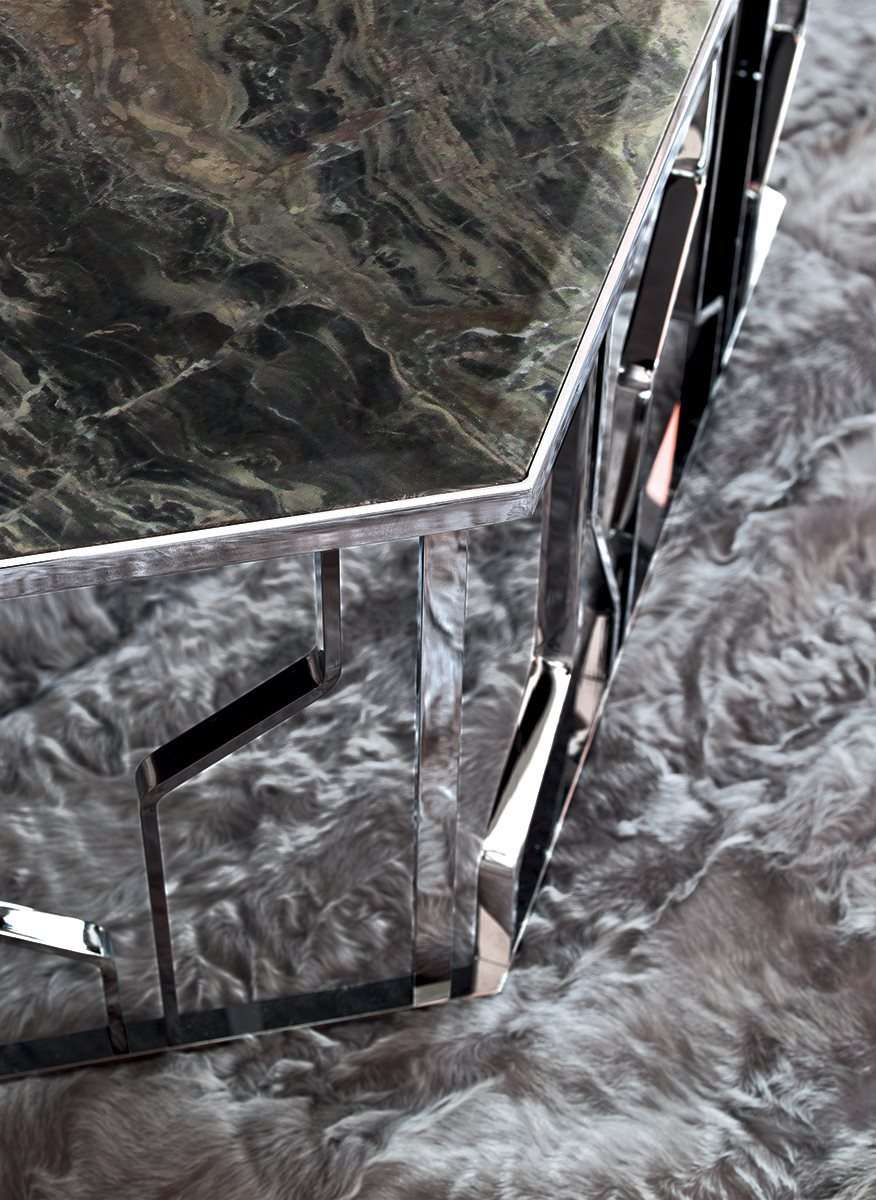 Обязательный элемент коллекции Loveluxe, известная серия столиков, консолей, шкафов, отличающихся неповторимым стилем Алессандро Ла Спады. Столики Ginza можно помещать в центре комнаты или рядом с диванами. Они имеют четкие и строгие столешницы шестиугольной формы и необычное основание, декорированное планками из глянцевого или матового металла, напоминающими стилизованные «вспышки»:символ всей серии Ginza.
