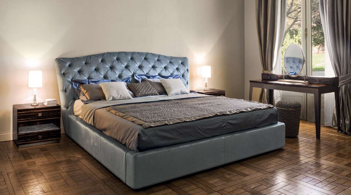 Кровать GRACE с классическим волнообразным изголовьем, декорированным простежкой капитоне. Мягкое покрытие может украшаться пуговицами из ткани, бархата или кожи в тон или ценными кристаллами Swarovski. Результат впечатляет, делая кровать главным элементом интерьера.