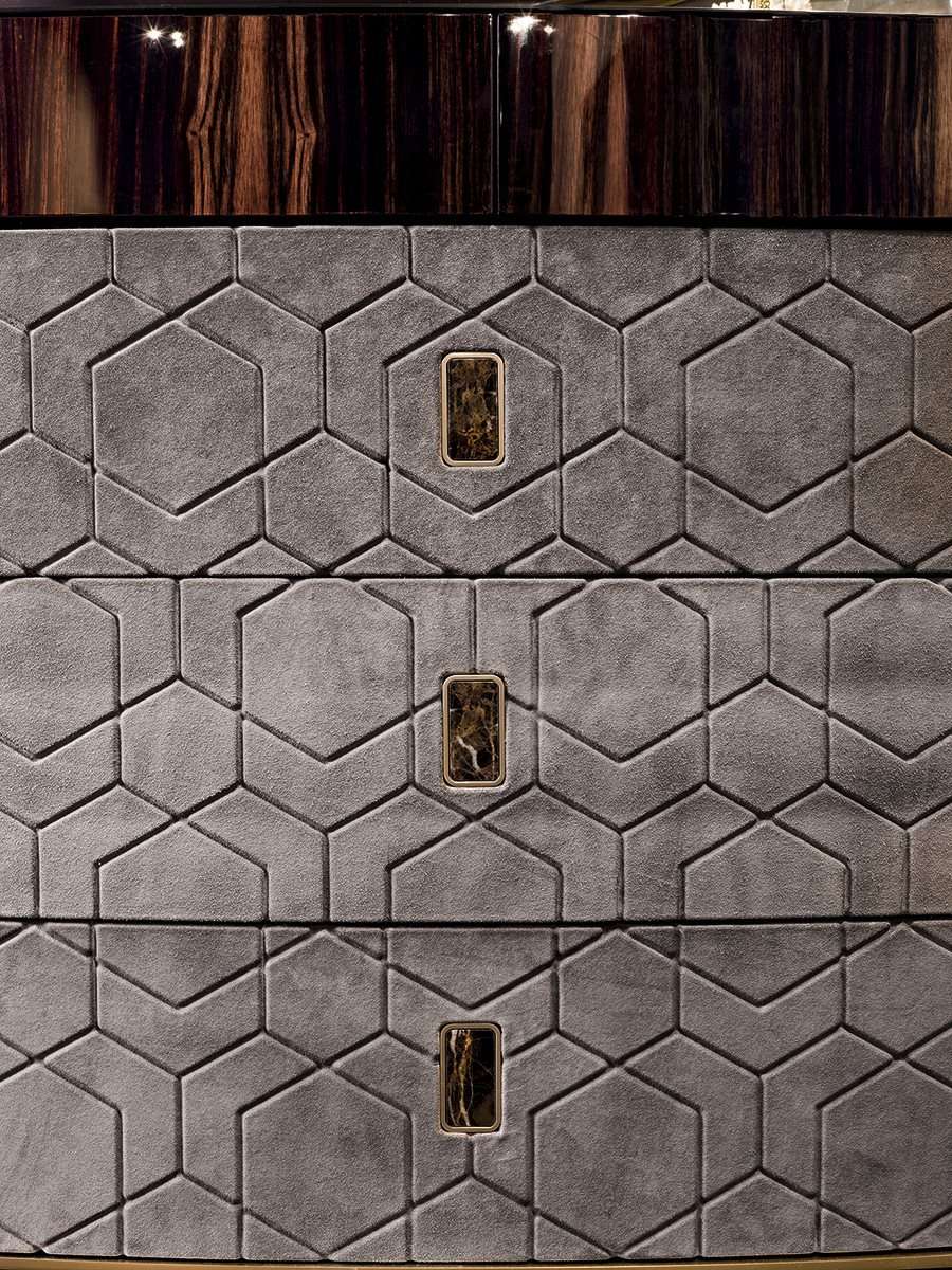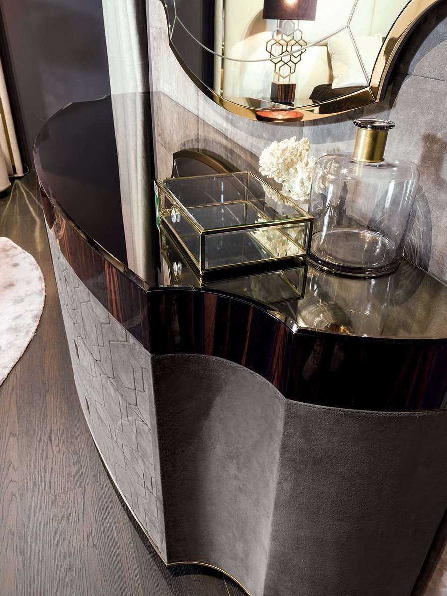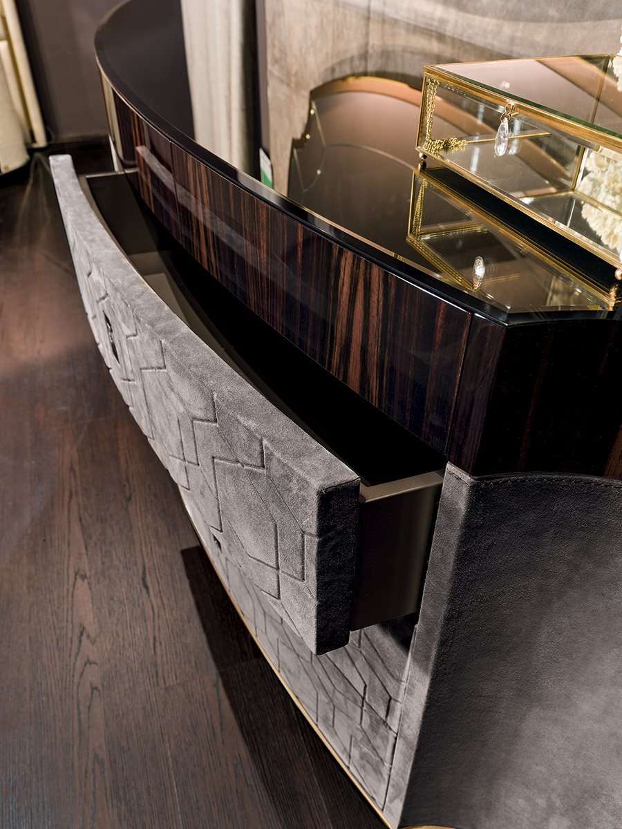 Миссия Longhi - привнесение искусства жить в роскоши в любое помещение, удовлетворяя ряд престижных эксклюзивных целей и предлагая изделия высочайшего качества. Комод Gylien является тому примером. Этот массивный комод предлагается также в островном варианте для королевских спален.