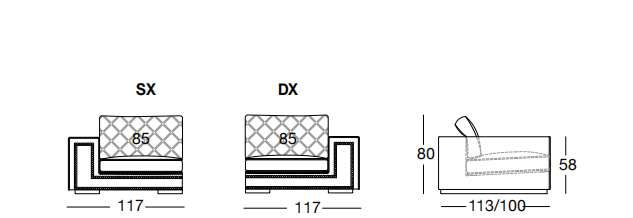 HELMUT 117х113/110 см LONGHI Боковая секция дивана (SX/DX)