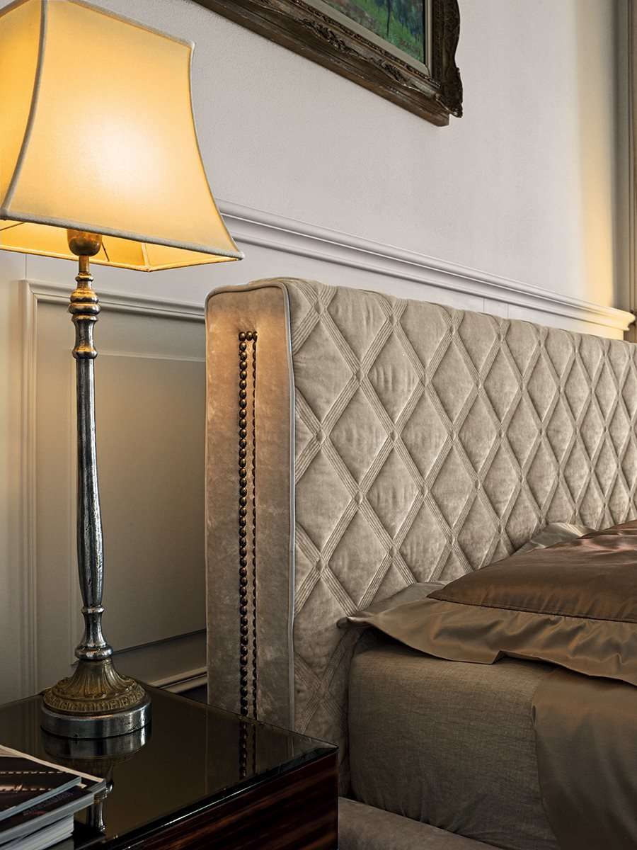 Как и одноименный диван, кровать HELMUT искусно сочетает современные и линейные объемы с элегантностью утонченной вышивки изголовья - легкого стеганого узора, - придающего изделию особую ценность.