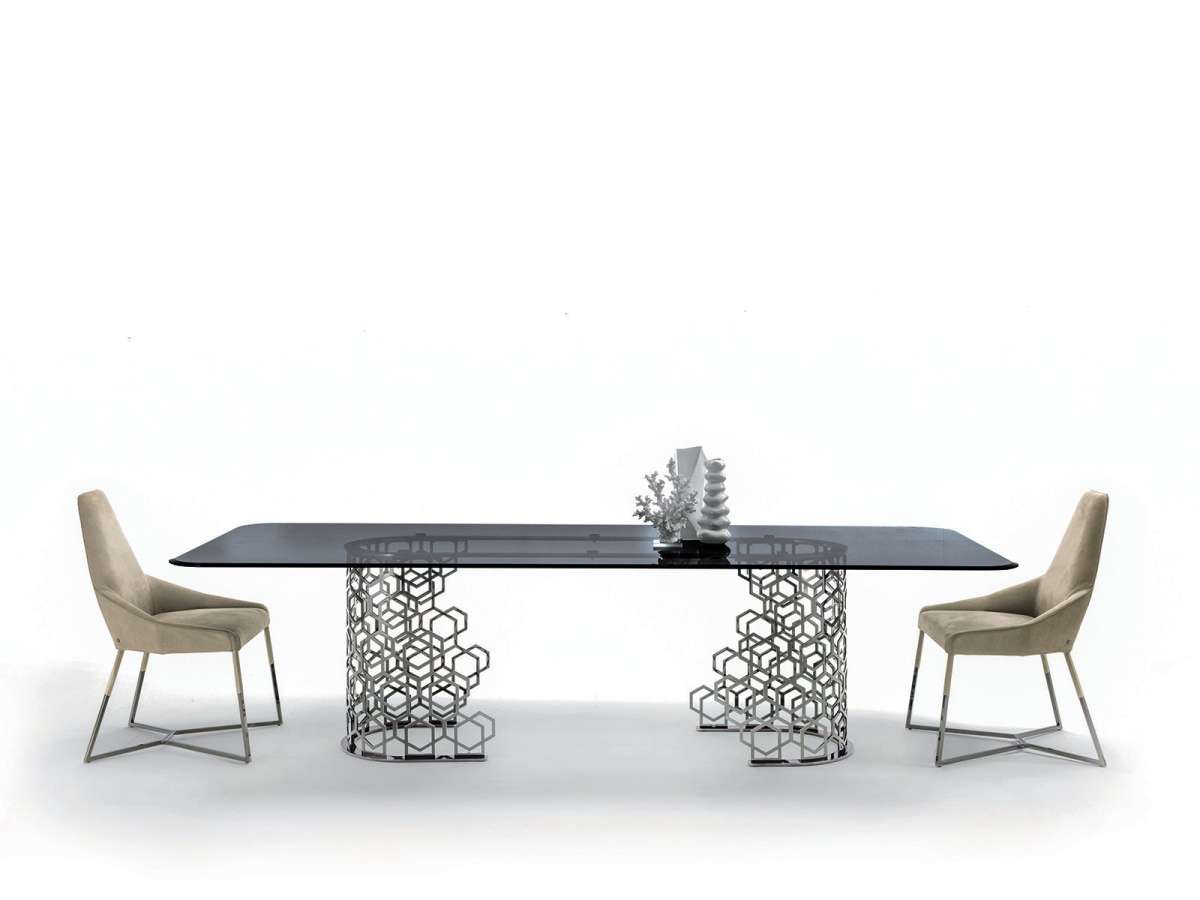 Серия столов и столиков Manfred, обладающих неповторимой индивидуальностью благодаря основанию «Sequence». Его ажурный узор кажется творением ручной работы, хотя на самом деле является результатом утонченной лазерной обработки. Декор «соты» от Джузеппе Яспарры - это стиль, подлинный знаковый рисунок, который используется в различных изделиях коллекции Loveluxe - столах, шкафах, а также буазери - и представляет собой уникальный выразительный язык Longhi. Расположенный в центре поворотный поднос придает функциональность мраморной или деревянной столешнице.