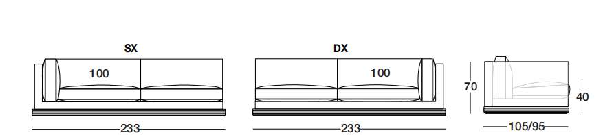 MASON 233х105/95 см LONGHI Боковая секция дивана (SX/DX)