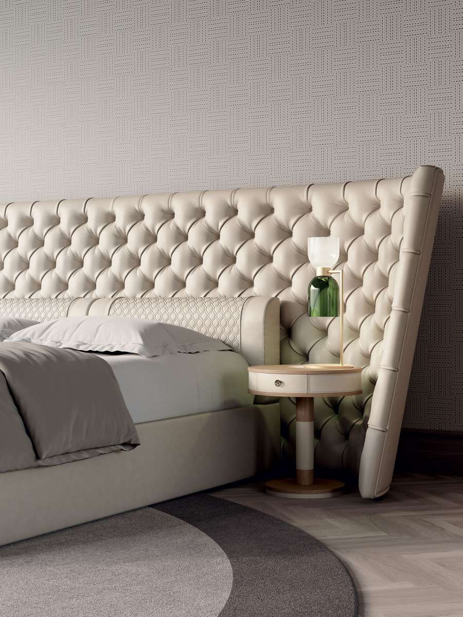 Кровать Medici Large выполнена в технике капитоне и имеет широкое изголовье. Благодаря своему выразительному горизонтальному строению кровать создает ощущение защищенности и уединения, которое подчеркивается изголовьем, словно обнимающим кровать в любящих и теплых объятиях. Практическое преимущество широкого изголовья – это пространство для размещения прикроватных тумбочек. Отделка капитоне по всей длине изголовья обогащает изделие и придает ему особую величественность. Аккуратный каркас кровати визуально облегчает общий вид. Встроенные поясничные подушки отделаны стеганой вставкой, что придает изделию гламурный вид и позволяет играть с различными текстурами.