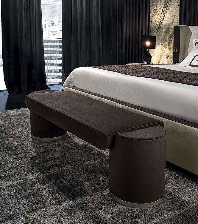 Банкетка архитектурных объемов мягких крупных форм. Банкетка Mi предназначена для установки в спальне в сочетании с соответствующей кроватью.