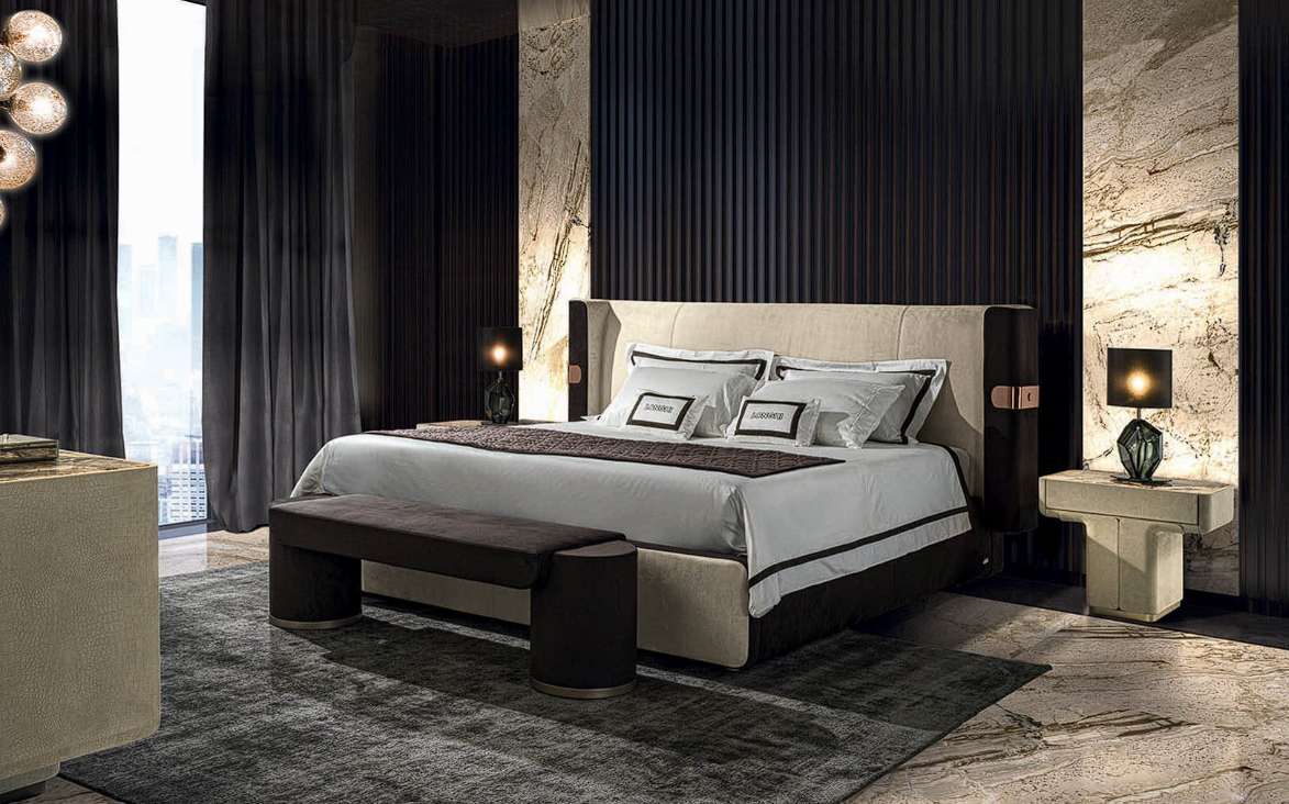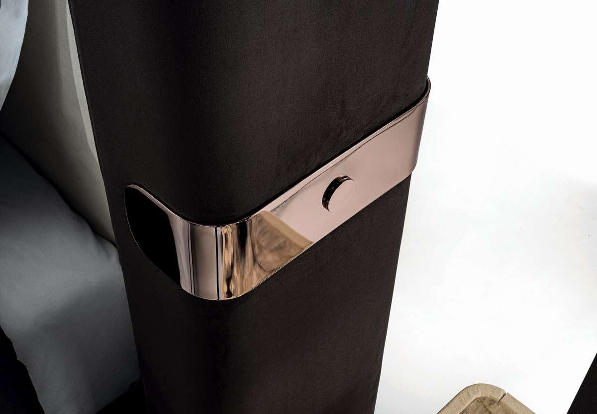 Кровать отличает большое изголовье лаконичных линий и архитектурных объемов. Богатую, как и диван, деталями, кровать MI характеризует эстетический язык, насыщенный особенностями исполнения, и современный стиль.