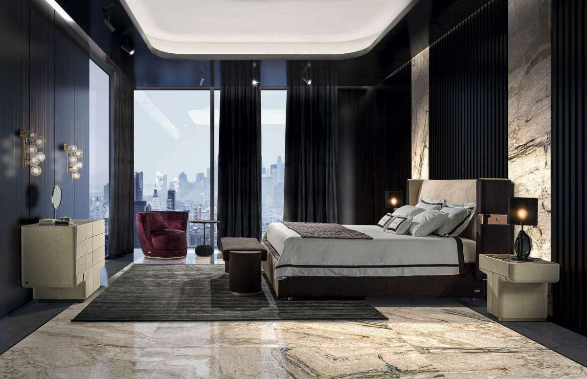 Кровать отличает большое изголовье лаконичных линий и архитектурных объемов. Богатую, как и диван, деталями, кровать MI характеризует эстетический язык, насыщенный особенностями исполнения, и современный стиль.