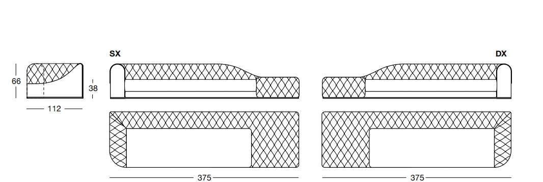 MILTON 375х112 см LONGHI Диван с подлокотником (SX/DX)