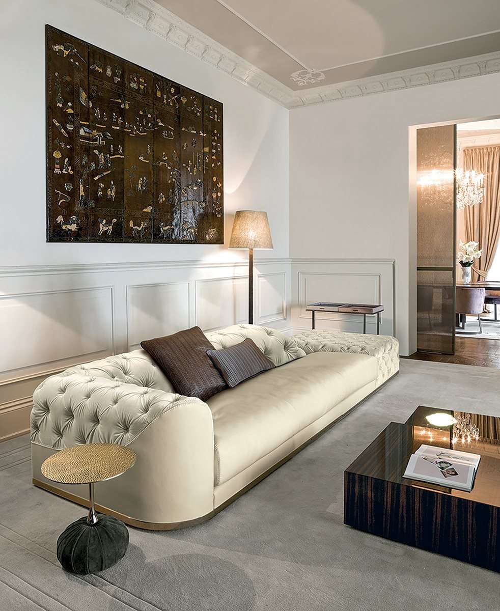 Диван Milton, характеризующийся густой простежкой капитоне спинки в сочетании с гладким цельным сиденьем, уже с первого взгляда заявляет о своей способности привлекать внимание и играть роль уникального изделия, обладающего яркой индивидуальностью. Его привлекательность связана с элегантной простежкой и дизайном, отличающимся округлыми и мягкими линиями, что делает его одновременно актуальным, традиционным и необычным.