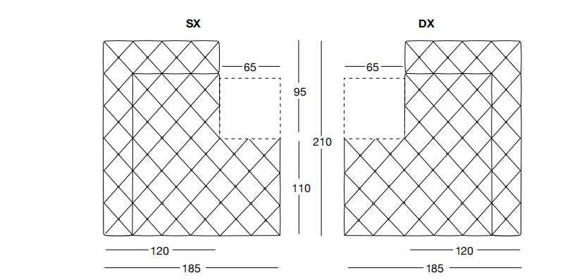 MUST 185х210 см LONGHI Приставная секция с нишей (SX/DX)