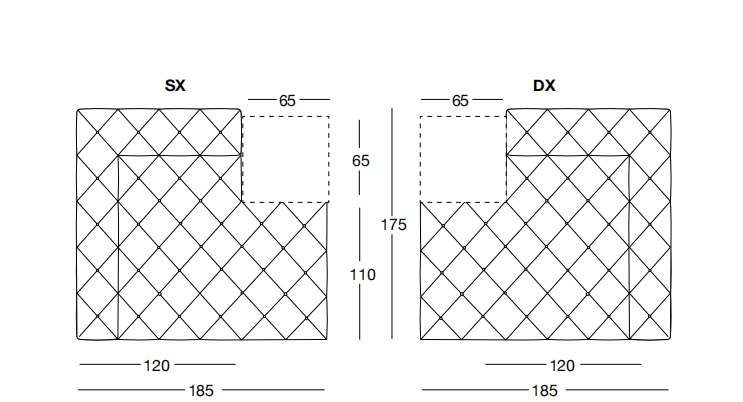 MUST 185х175 см LONGHI Приставная секция с нишей (SX/DX)