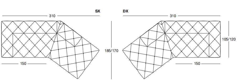 MUST 310х185/170 см LONGHI Полуугол с подлокотником 120 см (SX/DX)
