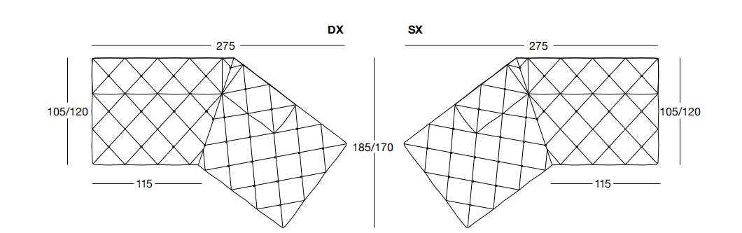 MUST 275х185/170 см LONGHI Полуугол без подлокотника 105 см (SX/DX)