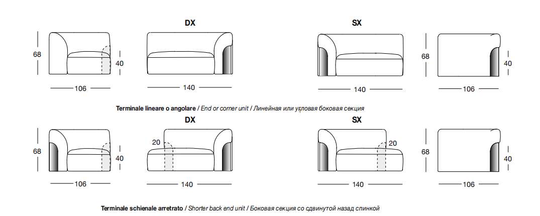 VISCONTI 210х110 см ...VISCONTI 210х110 см Vittoria Frigerio Угловой элемент дивана с четырьмя подушками (левый/правый угол)