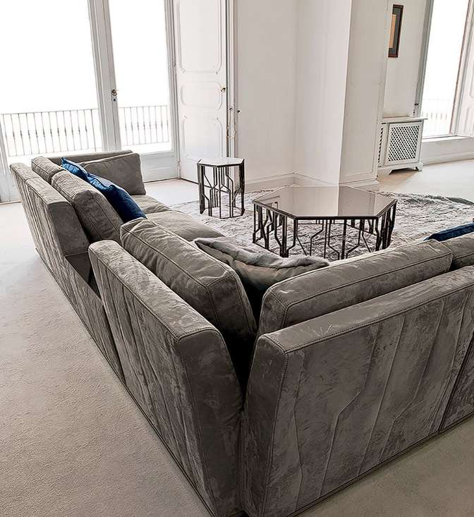 Диван Nobu - превосходное изделие коллекции Loveluxe - обладает отличительными признаками коллекции уникальных мебельных аксессуаров: четкие линии на наружном каркасе вызывают в памяти металлический каркас столов, столиков и консолей Ginza. Это линейный и модульный диван со строгим дизайном, обладающий при этом богатым внешним видом. Диван прочно опирается на пол благодаря основанию с металлической окантовкой и отличается спинкой с такой же высотой, как у подлокотников, которые, расширяясь, слегка открываются лепестком. Композицию дополняют многочисленные подушки, которые могут создавать разнообразные цветовые эффекты благодаря множеству изысканных тканей.
