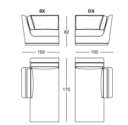 NIP NOBU 102х175 см LONGHI Шезлонг с высоким или низким подлокотником (SX/DX)