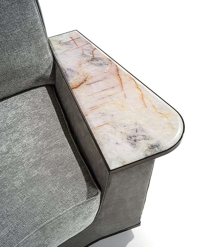 - Полуугловая секция с подлокотником из мрамора из розового кварца