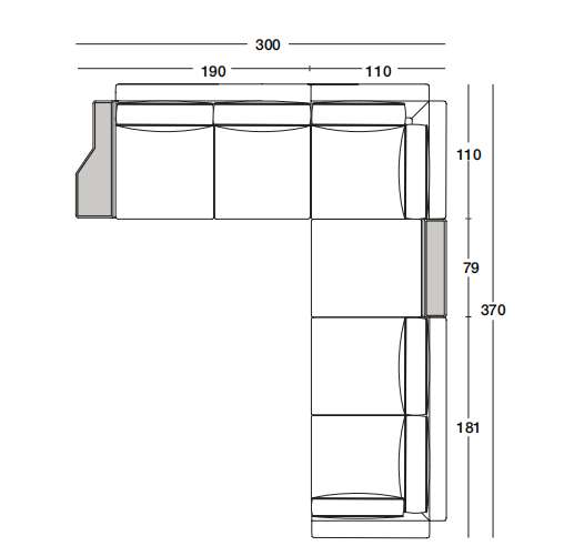 - Боковая секция с высоким подлокотником 181х110 см