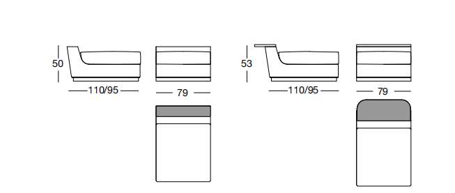 NOBU 79х110/95 см LONGHI Центральная секция с низким подлокотником и поверхностью