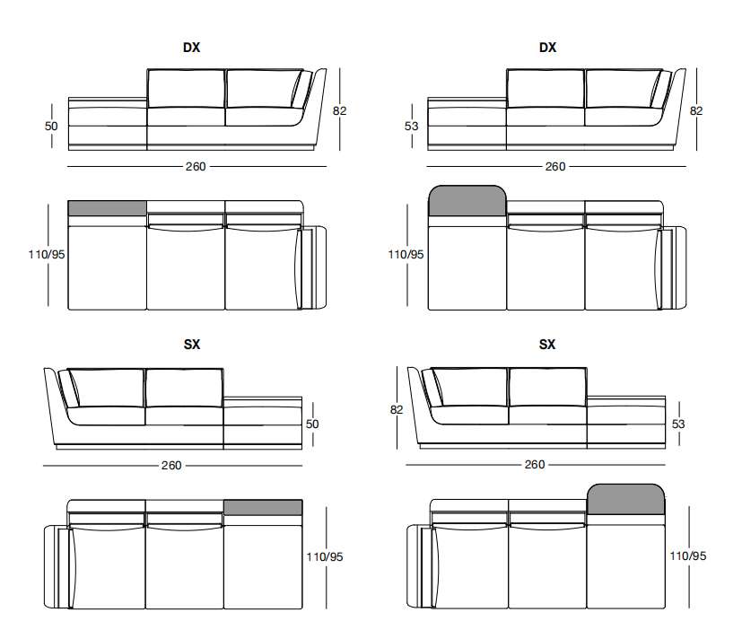 NOBU 260х110/95 см LONGHI Боковой элемент с поверхностью (SX/DX)