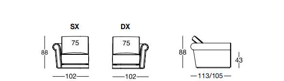 PAUL 102х113/105 см LONGHI Боковая секция (SX/DX)