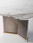Благородный по своей природе, обеденный стол Pinto от Vittoria Frigerio подчеркивает мастерство дизайнеров коллекции, создавая впечатляющий визуальный эффект и элегантность. Скошенная мраморная столешница доступна в изысканных вариантах отделки; стеганое основание строгой геометрической формы предлагается в двух вариантах, создавая универсальное и изысканное предложение.