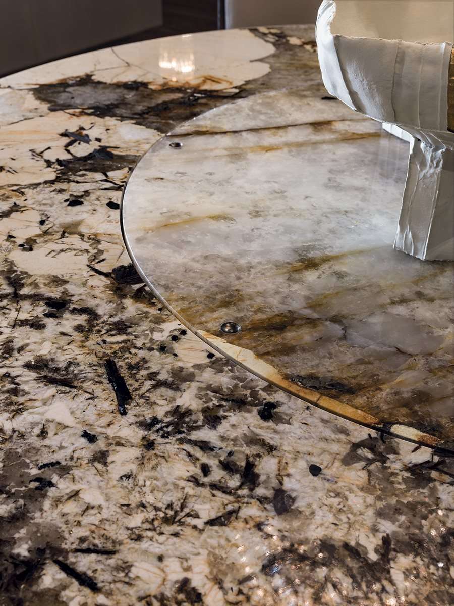 Стол Re отличает абсолютная ценность использованных для его изготовления материалов. Мрамор вставлен в изящный обтянутый кожей каркас. Мягкие линии и швы, выполненные умелыми мастерами-ремесленниками, придают этому изделию уникальность, которая обеспечит неповторимость любого интерьера.
