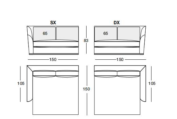YOUNG 188х98 см LONG...YOUNG 188х98 см LONGHI Боковая секция без столика (SX/DX)
