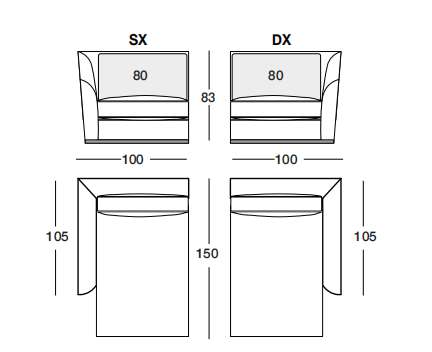 ANSEL 195х100 см LON...ANSEL 195х100 см LONGHI Боковая секция дивана (SX/DX)