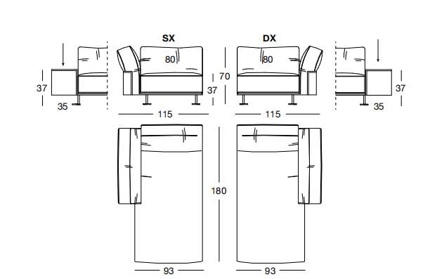 GRACE 195х108/90 см ...GRACE 195х108/90 см LONGHI Боковая секция дивана (SX/DX)