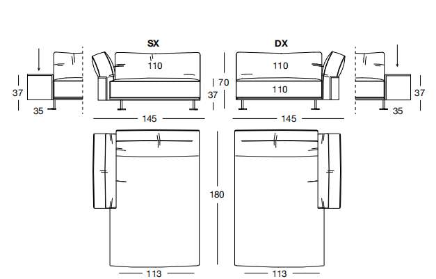 BRIVIO 210х84 см Vit...BRIVIO 210х84 см Vittoria Frigerio Элемент дивана с низким подлокотником