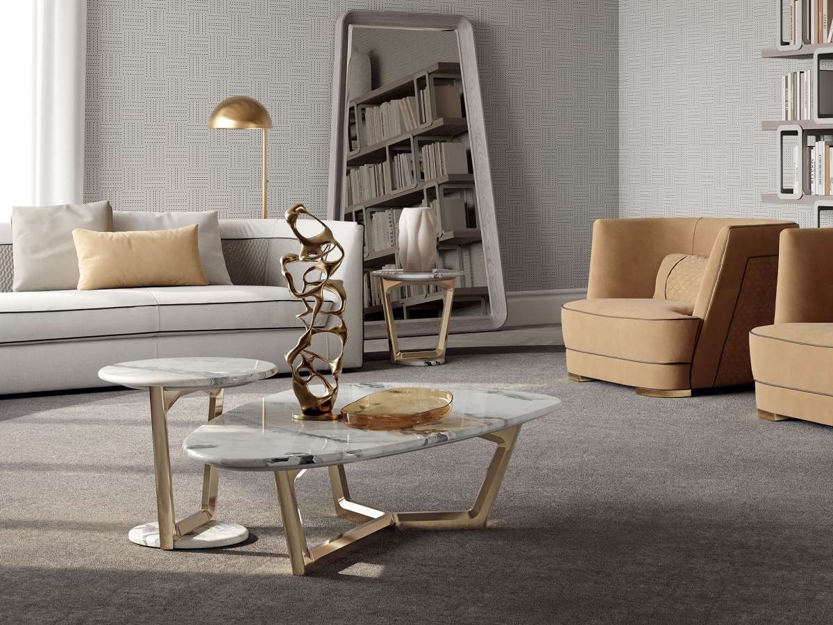 Столики Savini отличаются характерной трапециевидной формой из массива дерева и мраморной столешницей. Тот же мрамор, что и для столешницы, используется и для основания столика, создавая асимметричный и неожиданный эффект. Столики Savini, доступные в различных формах и размерах, – это эффектное дополнение интерьера, которое можно использовать как отдельно, так и в сочетании с другими предметами из той же коллекции, для тех, кто ищет оригинальный и игривый результат.