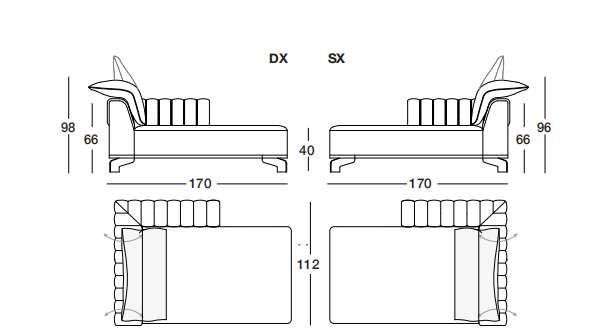 SHEFFIELD 112х170 см LONGHI Шезлонг с подлокотником (SX/DX)