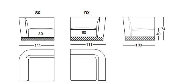 WELLES 111х100 см LONGHI Боковая секция дивана (SX/DX)