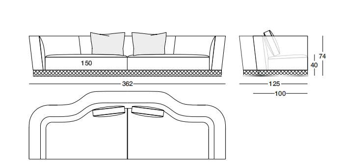 WELLES 362х125 см LONGHI Диван с двойной глубиной