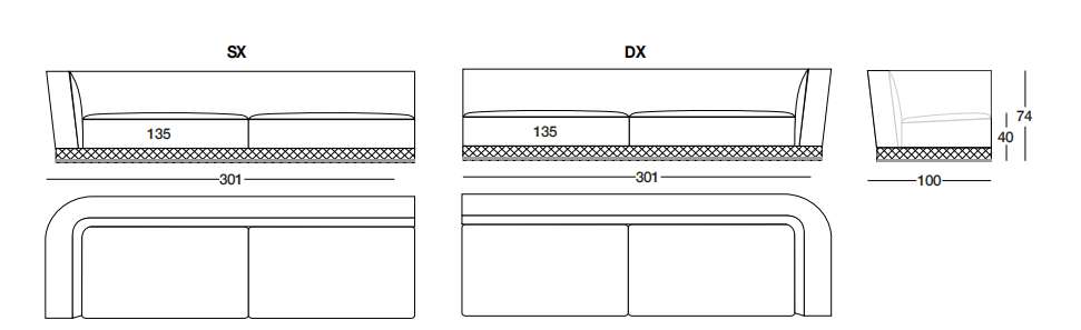 WELLES 301х100 см LONGHI Боковая секция дивана (SX/DX)